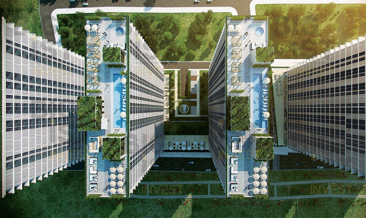 Furthermore, it offers a tranquil and peaceful living space focusing on the efficient and correct use of the land, energy, and water, where you can see the sea from your window. The project is comprising of 3 towers, each with 23 stories built on a land of 26.000 m2 in total, an enjoyable life is waiting for you with outdoor and indoor swimming pools in each tower, as well as fitness, spa, steam rooms, walking parlor, playground and shopping facilities enabling you to meet all your needs without going away from your home.